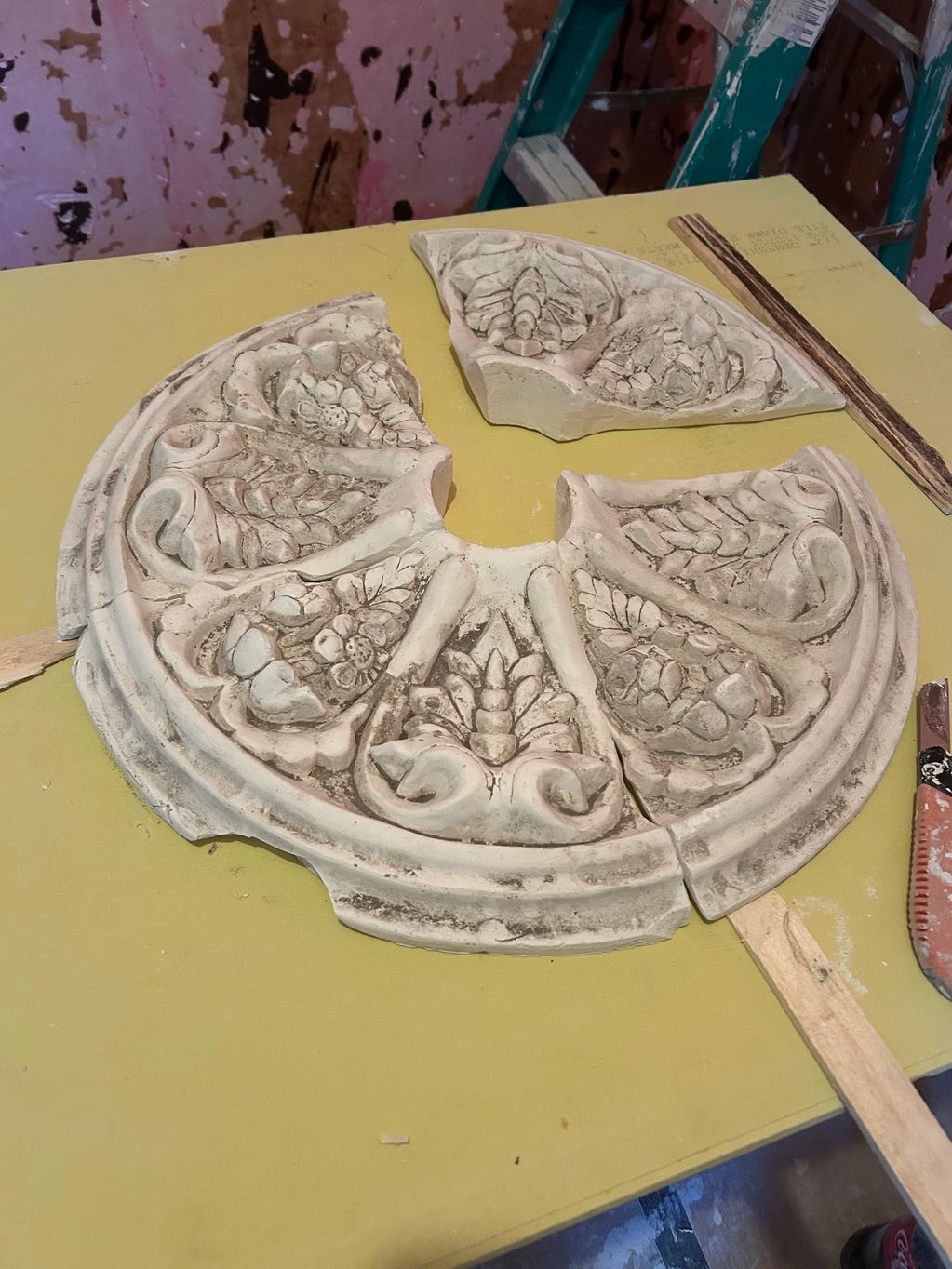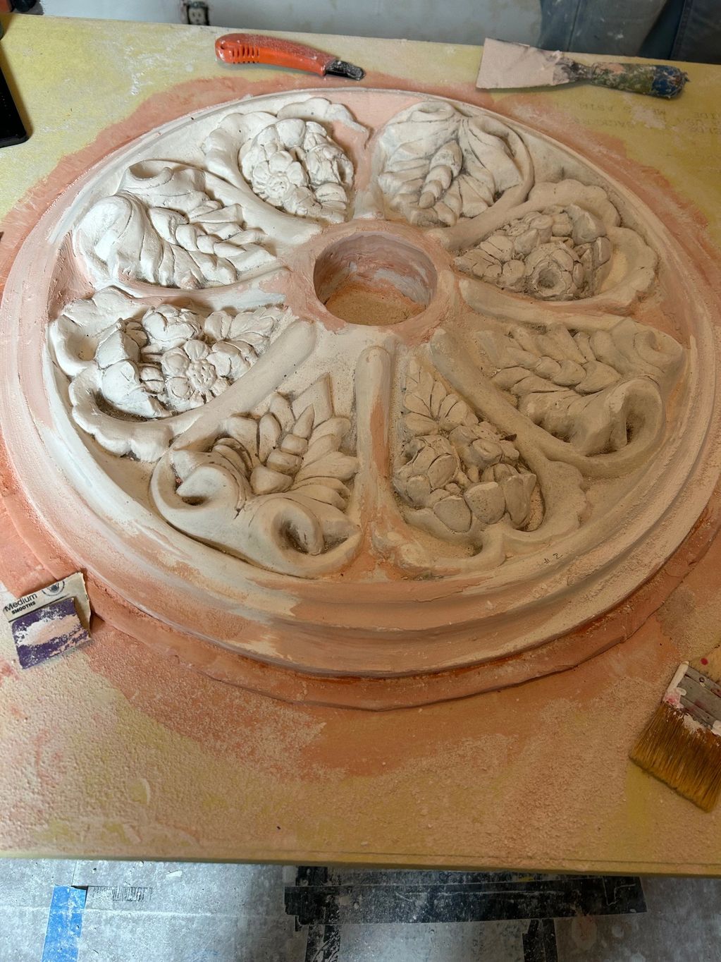 A replica of the central medallion from a Park Slope, Brooklyn townhouse. The house is over a century old. The medallion diameter is 22 inches.